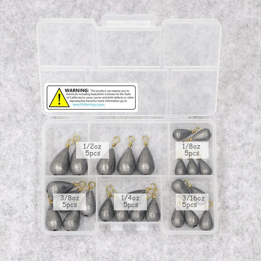 Fishing Weights Sinkers Kit, 25pcs Various Bass Casting Weights Drop Shot Sinkers Catfish for Saltwater Freshwater Fishing